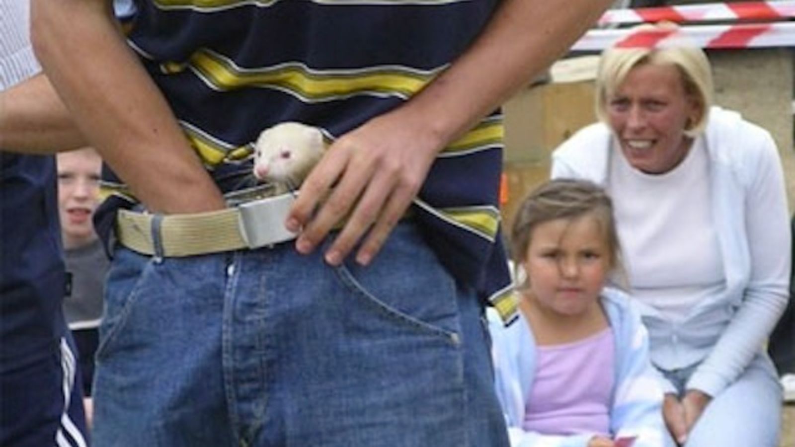 Yep. You tie the ankles of your pants good and tight, then drop two ferrets into the waist before sealing that exit up with a belt. Then you stand in front of the judges and wait. Whoever lets their ferrets out first, loses.
