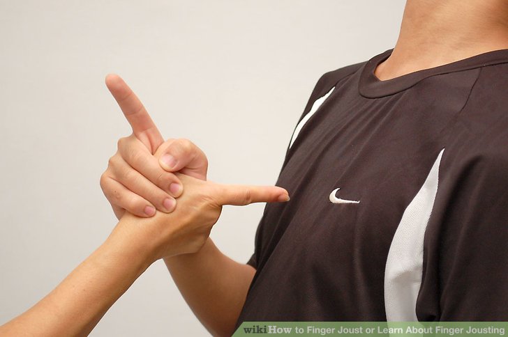 “Finger jousting is a sport in which two consenting players square off in an attempt to prod their opponent with their lancing (right) index finger before their opponent can.”