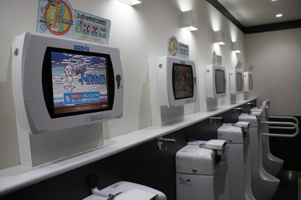 That’s a screenshot from the Japanese ‘Toylet’ interactive urinal system. The Japanese have been innovators in video game technology for decades; it should come as no surprise that they’re ahead of the North American curve when it comes to interactive lizard-draining.
