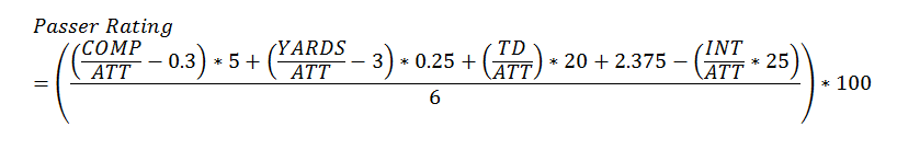 Also, the passer rating leaves out some key stats, like sacks taken (or times he insulted your mother), fumbles (forgotten birthdays/anniversaries/surgical procedures), and yards rushed by the quarterback (times he cleaned up the soiled underwear off his apartment floor before inviting you over). It’s all a complex tapestry.