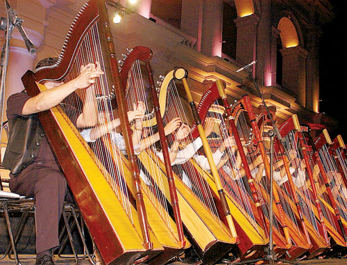 The core instrument in Guarania is the Paraguayan harp, which looks something like this: