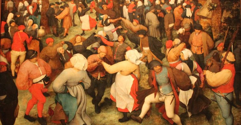 The first known occurrence of dancing mania occurred in the 7th century. Then, at some point in the 1020’s, a gaggle of peasants began spontaneously dancing around a church on Christmas Eve. In 1278, a batch of 200 people began inexplicably kicking out the jams on a bridge over the River Meuse in Germany. The bridge collapsed, killing nearly everyone involved.