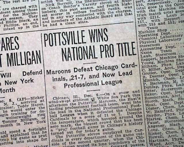 The NFL awarded the championship to the Chicago Cardinals, issuing a suspension on the Pottsville Maroons for having violated league rules. The Cardinals had hurried together a couple more games in the final two weeks of allowed playing time, including one against the Milwaukee Badgers that featured four high school players on the Badgers’ side, since not everyone on the roster stuck around after December 6. That was also a violation of the rules, but it only resulted in a $1000 fine against Chicago (which was later rescinded) and the promise that their 59-0 win would be stricken from official league standings (though no one ever got around to that).