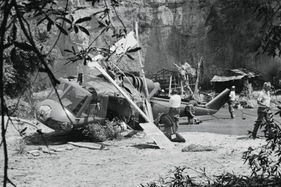 Of all the film set accidents, this one might be the worst. In one of the segments of The Twilight Zone: The Movie, a character played by actor Vic Morrow was supposed to travel back in time to Vietnam where he’d meet two orphaned kids. All three of them were to be shot at by a US Army helicopter. You can see where the ham-fisted moral is being driven like a semi through this particular scene.