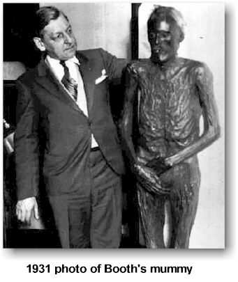 William Evans, the Carnival King of the Southwest, leased the mummy from Finis Bates and kept hauling in the money. After a circus train wreck near San Diego, the mummy was kidnapped; though for the $1000 reward, the kidnapper handed him back to Evans. In the interim, Finis Bates passed away, which enabled Evans to purchase the mummy outright from his widow.