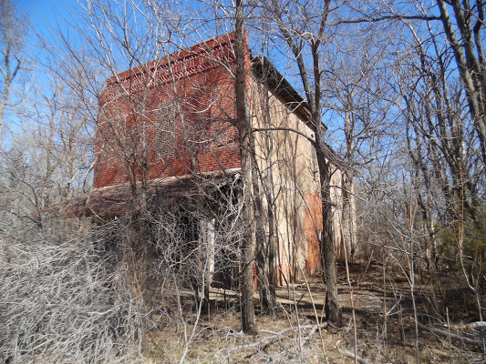 Nope. The Rock Island execs paid for another survey, then swung their line toward Hutchinson instead. Local Hutchinsonians sweet-talked the Missouri Pacific folks to do the same, and that was that. Lerado, that plucky little typo-town with big dreams of prosperity and phallic squashes, was ten miles off the nearest railroad and its real estate market tanked. Doc Brady lost everything and sulked back to Louisville. By 1915, all that remained was the school house and a country store.